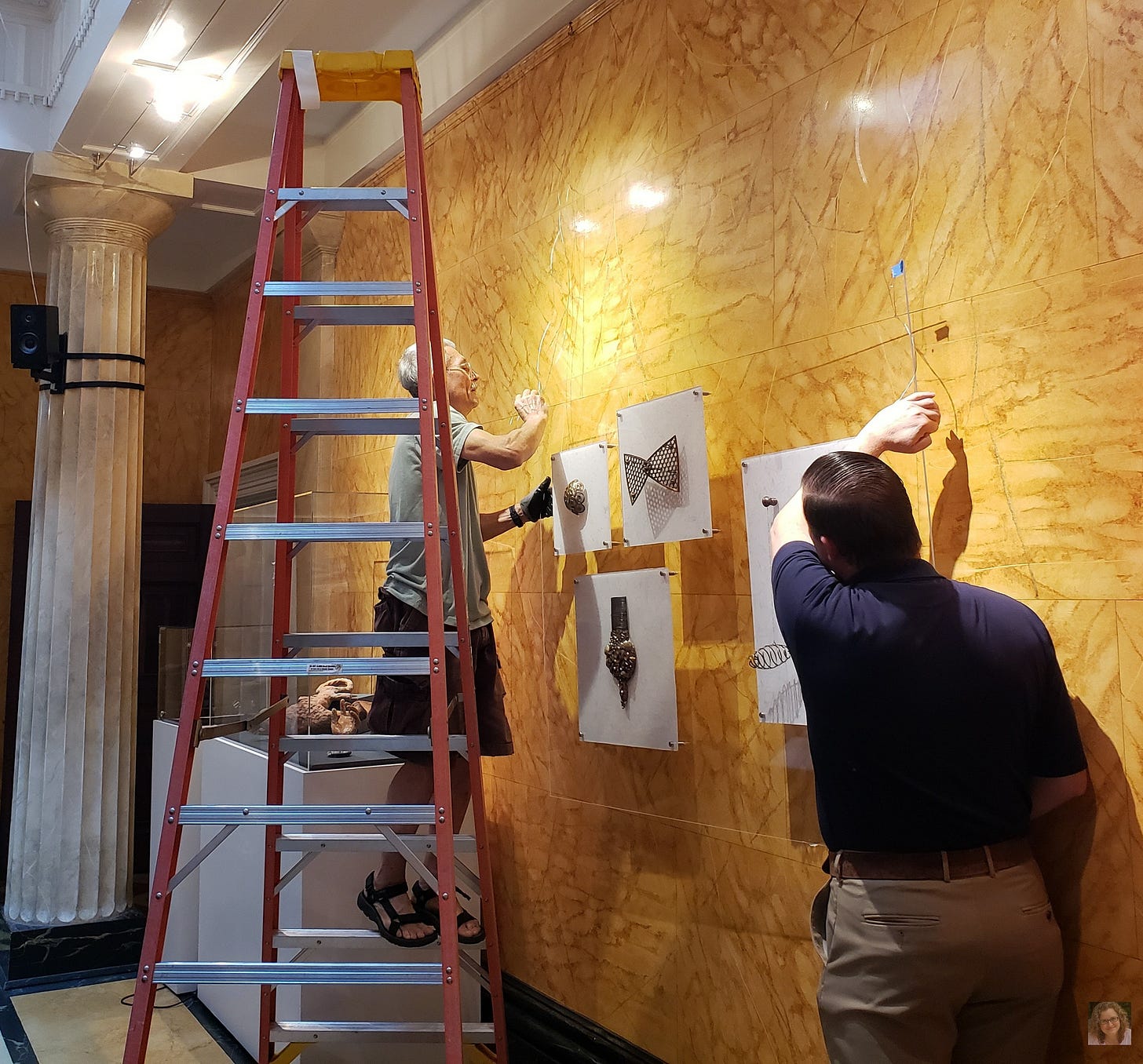 Nearing the installation phase in late May and early June, the artists began delivering their work. Throughout I collaborated with consulting preparator Milutin Pavlovic, an artist who has a great eye and all the practical skills necessary to install a show—he’s as quick with a math calculation as he is with a tape measure and tying a wire knot. Milutin and I worked together for 17 years at Telfair Museums, and I enjoyed having the opportunity to do so again.