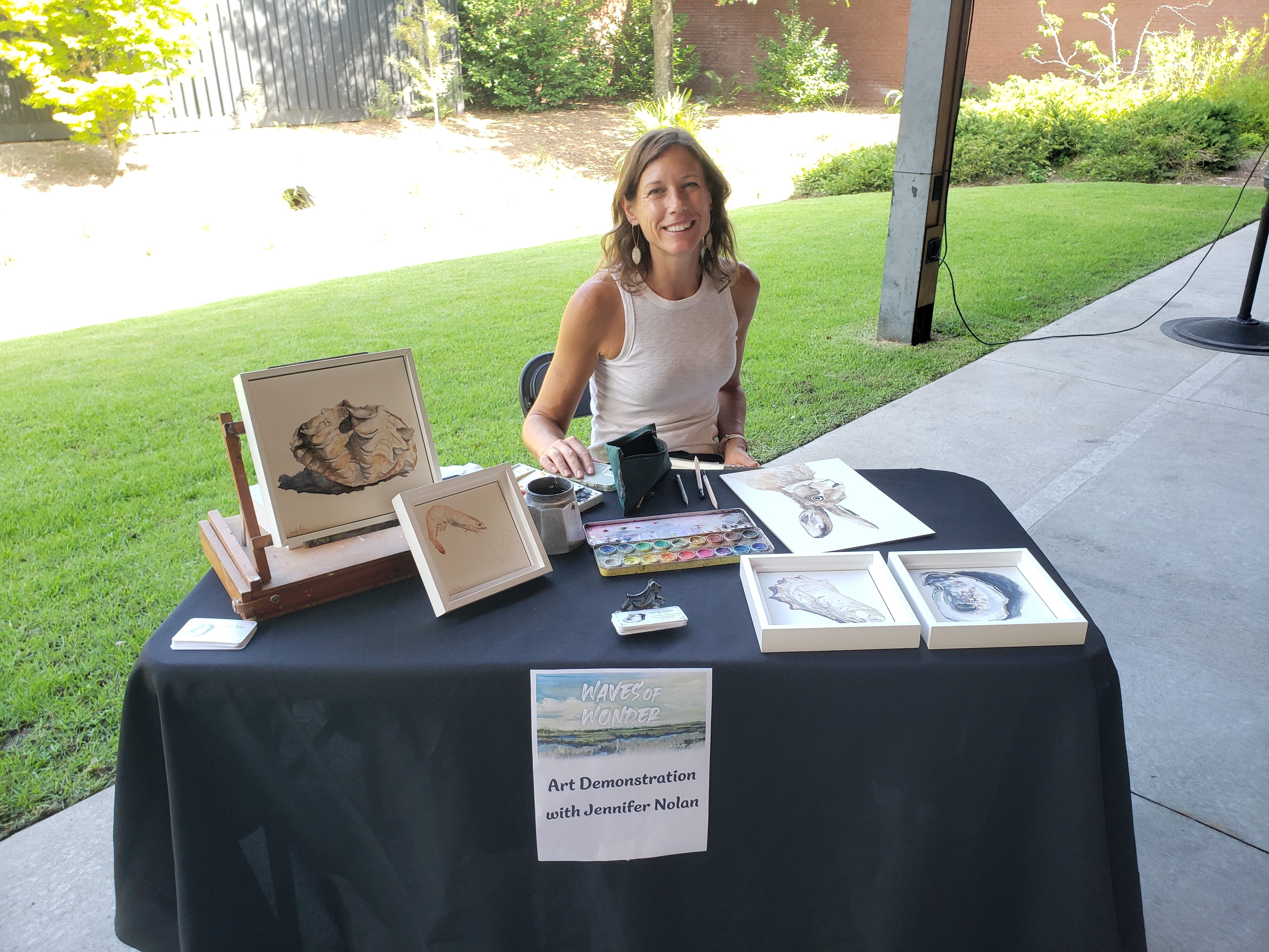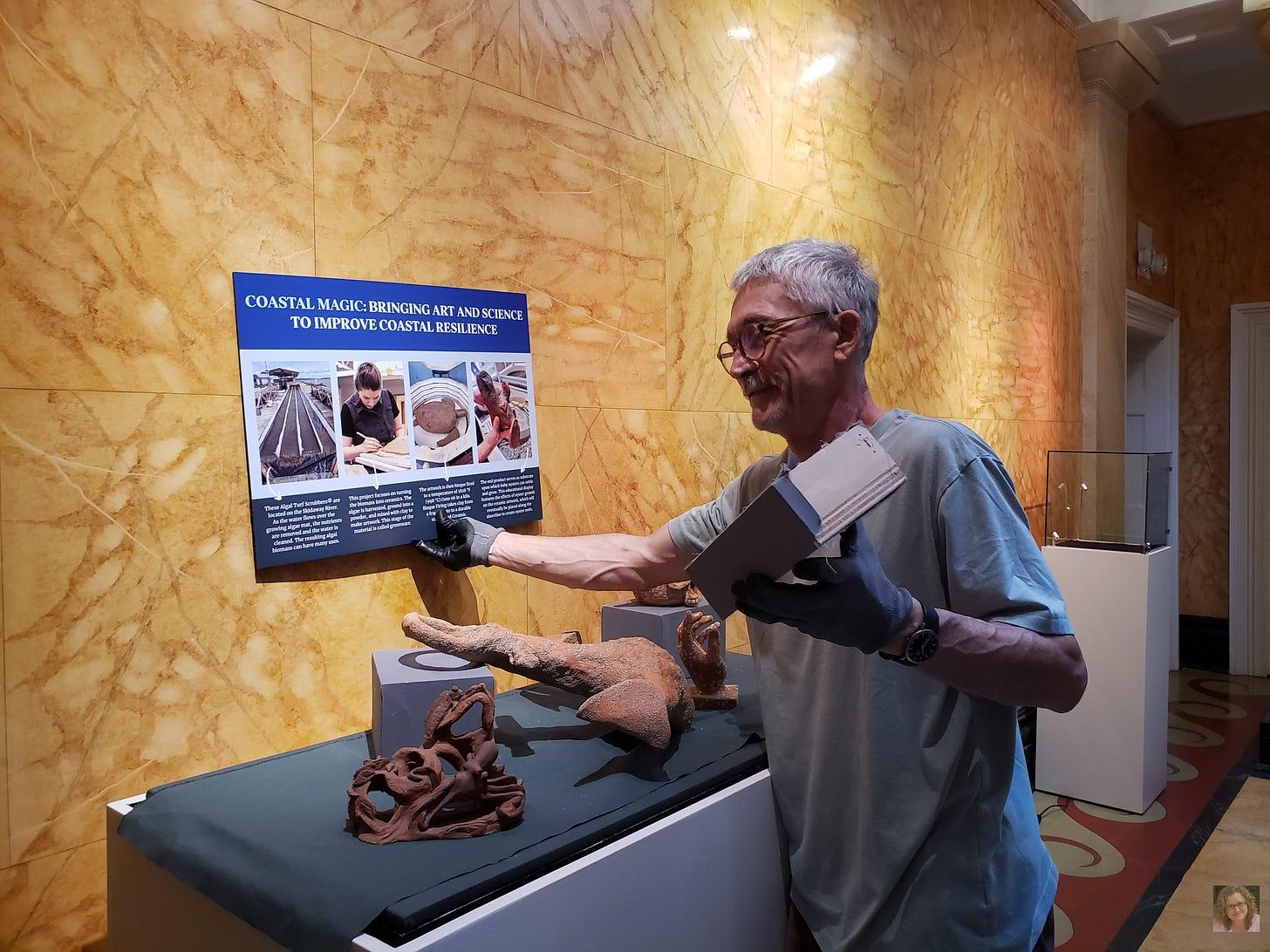 As I read about the ten funded projects, I knew I wanted to feature them all. Molly concurred. I shared my idea with Georgia Sea Grant Asssociate Director Mona Behl in Athens, who connected me with their Public Relations Coordinator Emily Kenworthy in Brunswick. They both loved the prospect and offered support. Georgia Sea Grant Director Mark Risse gave us a small stipend for the opening reception. Emily and her public relations team Trey Cooper and Shanon Wise led media relations. Trey designed the exhibition logo.