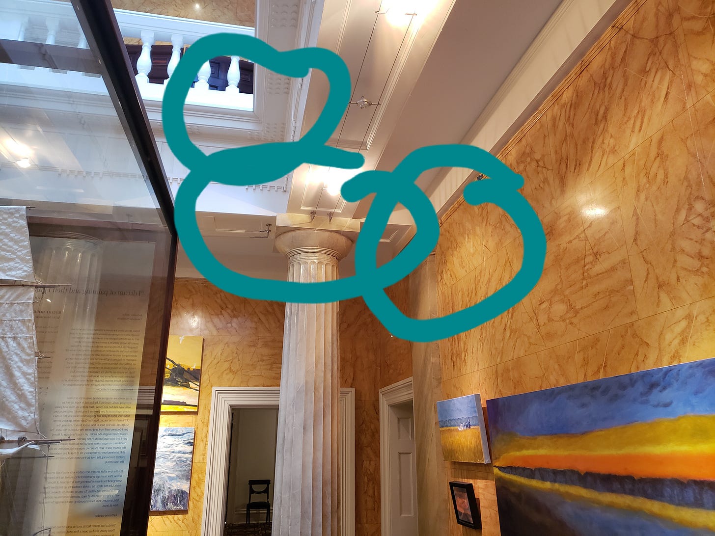 Jen’s a 2023 grant recipient of the Georgia Sea Grant’s Artists, Writers and Scholars program, an initiative that supports “fresh perspectives on our coastal and marine resources.” As an award requirement grantees must share their work with the public. Jen asked if we would help. I liked her work, and I liked the concept of the program, but I wasn’t sure we had the right space. Jen’s five paintings would not fill the exhibition space (the museum’s atrium). I told her I would think about it. She gave me a file with information, and directed me to the program’s website.