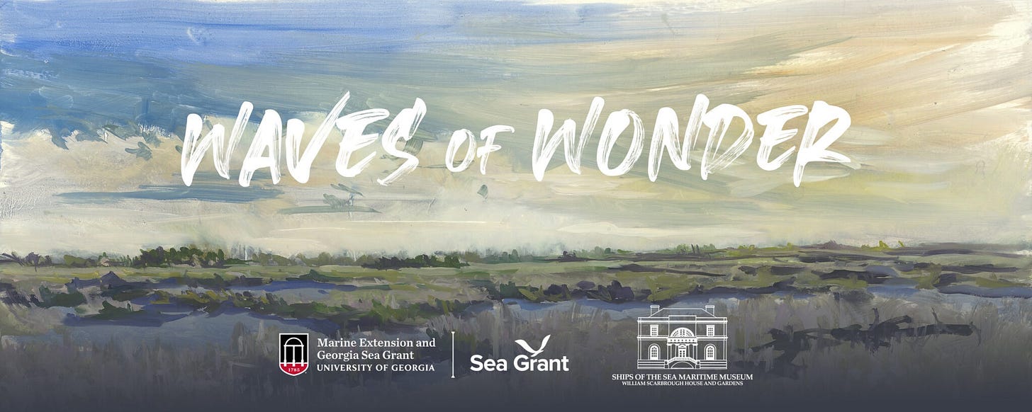 Waves of Wonder opened to a crowd of hundreds on June 5, 2024, and will be on view until September 1. Please visit if you are in Savannah. You are sure to be WOWed by the individual projects, as well as the collective installation. Most certainly you’ll walk away thinking differently about the Georgia coast. There’s some buzz about future iterations of this exhibition elsewhere in Georgia—stay tuned! To learn more about Waves of Wonder and the featured artists, writers, and scholars here.