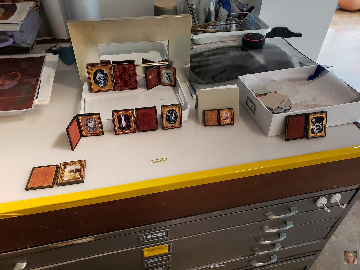 I also learned interesting and influential biographical details. For example, Peter’s father is a retired marine biologist and his grandfather was a sailor who circumnavigated the world on the ship Joseph Conrad, now moored at the Mystic Seaport Museum. Artist Dana Montlack’s background included processing x-rays at her grandfather’s doctor’s office. Now, as I look at her photo collages, I envision her working in an old-fashioned doctor’s office (with avocado green furniture) developing x-rays.
